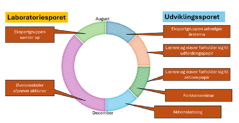 De årstemaer, hvor udfordringssporet begynder august 2025 og august 2026 kan angives med dette årshjul: