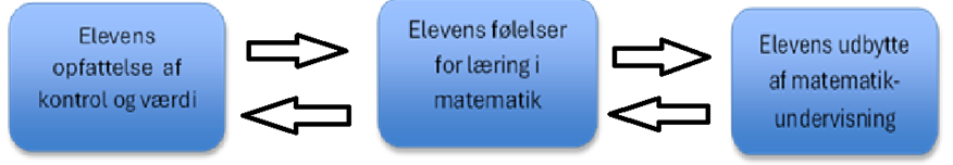 Der er mange forskellige slags følelser. Fremfor at forske kun i en enkelt følelse har man de senere år forsøgt at se, hvordan følelserne hænger sammen, og hvordan de hænger sammen med elevens udbytte af et undervisningsfag som matematik. Et eksempel er den såkaldte CVT model, (control-value-teori), som kan oversættes til dansk som kontrol-værdi-teori. Ifølge CVT modellen er følelserne afgørende. Elevens opfattelse af kontrol og værdi påvirker nemlig ikke direkte udbyttet, og udbyttet påvirker heller ikke direkte elevens opfattelse af kontrol og værdi. Følelserne er helt afgørende som mellemled. Elevens opfattelse af, hvor meget kontrol hun har og hvilken værdi en situation har, påvirker følelser, og følelser påvirker kontrol og værdi. Elevens udbytte påvirker følelser, og følelser påvirker udbytte.