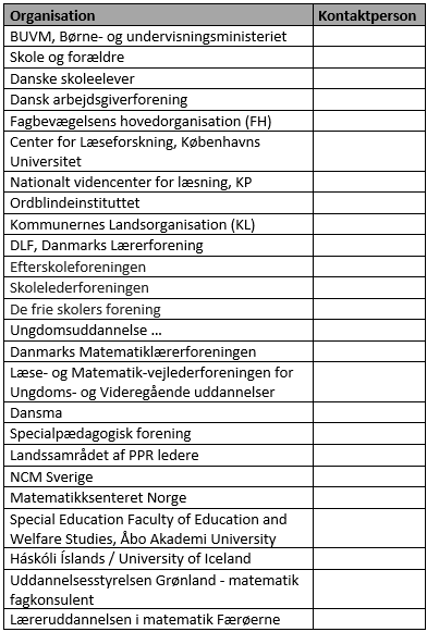 FOMAVA har et ønske om at have et stærkt og bredt samarbejde med institutioner og foreninger, som er i kontakt med målgruppen. Der vil således i løbet af 2026 være forsøg på kontakt til og forhåbentlig være etableret kontaktpersoner med følgende