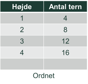 Elev: ’Hvis $h$ er højden, og $t$ er antal tern, så er $4 \cdot h = t$’