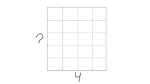 Elev: ’Hvis højden er $10$, kan man finde antal tern ved at regne $10+10+10+10$. Hvis højden er $100$, er det $100 + 100 + 100 + 100$. Hvis den er $1000$, er det…’
