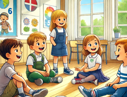 Børnehaveklasseleder: Og før der gjorde vi det sådan, at der var en der stod op og fire, der sad ned. Hvordan kunne vi så gøre det nu, Anton?